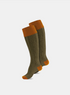 Een schietsok voor heren, handgemaakt van luxe wolvezels, in de kleuren rood en olijf.