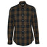 Barbour chemise à carreaux marron et vert sur fond bleu foncé